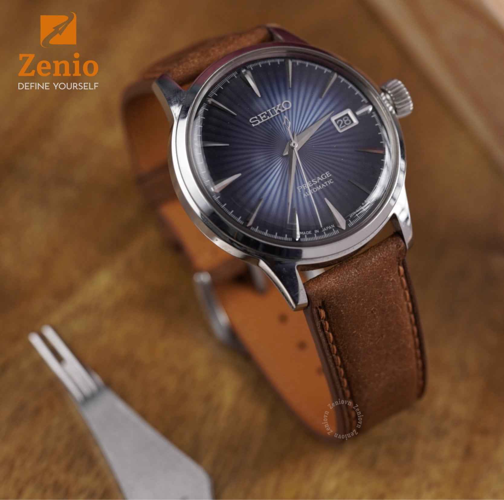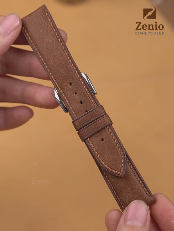 Each strap undergoes meticulous saddle stitching by the skilled hands of Zenio artisans. Unlike machine-produced lock stitches, our method ensures unparalleled durability, with two independent stitches forming a secure knot at every point. We exclusively use 0.35mm linen thread, chosen for its delicate yet robust weave, enhancing the natural beauty of our craftsmanship.