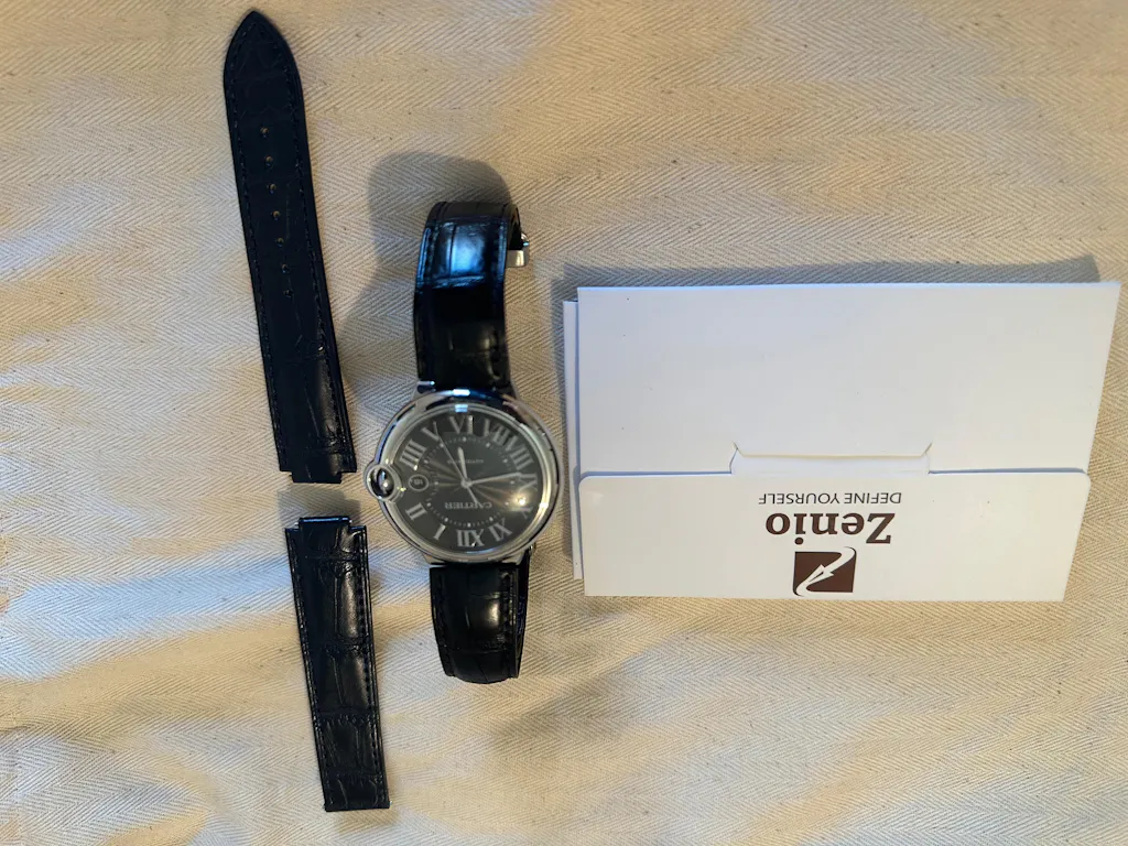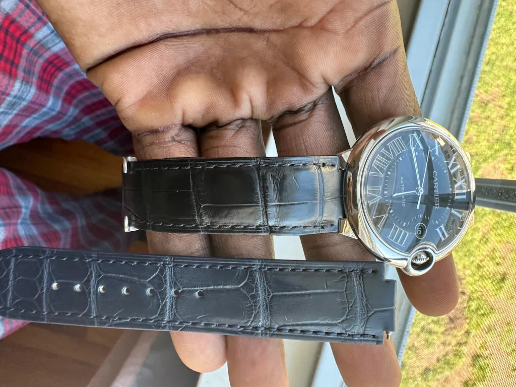Matte Black Aligator Strap For Cartier Ballon Bleu - New Clasp